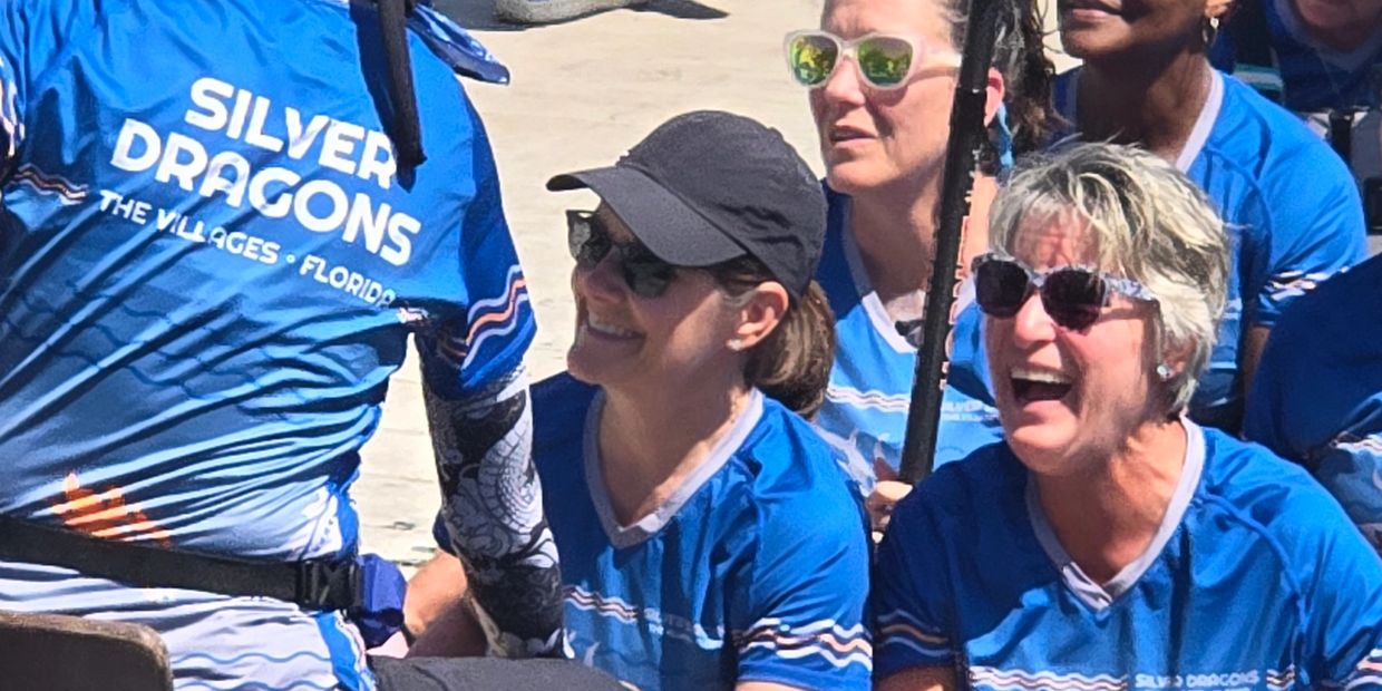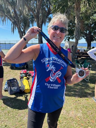 The Silver Dragons are a competitive team made up of men & women age 55+. We typically practice from 8:00 AM to 9:00 AM at Central Lake, Eastport on Tuesday, Lake Sumter on Thursday and Lake Miona on Saturdays.